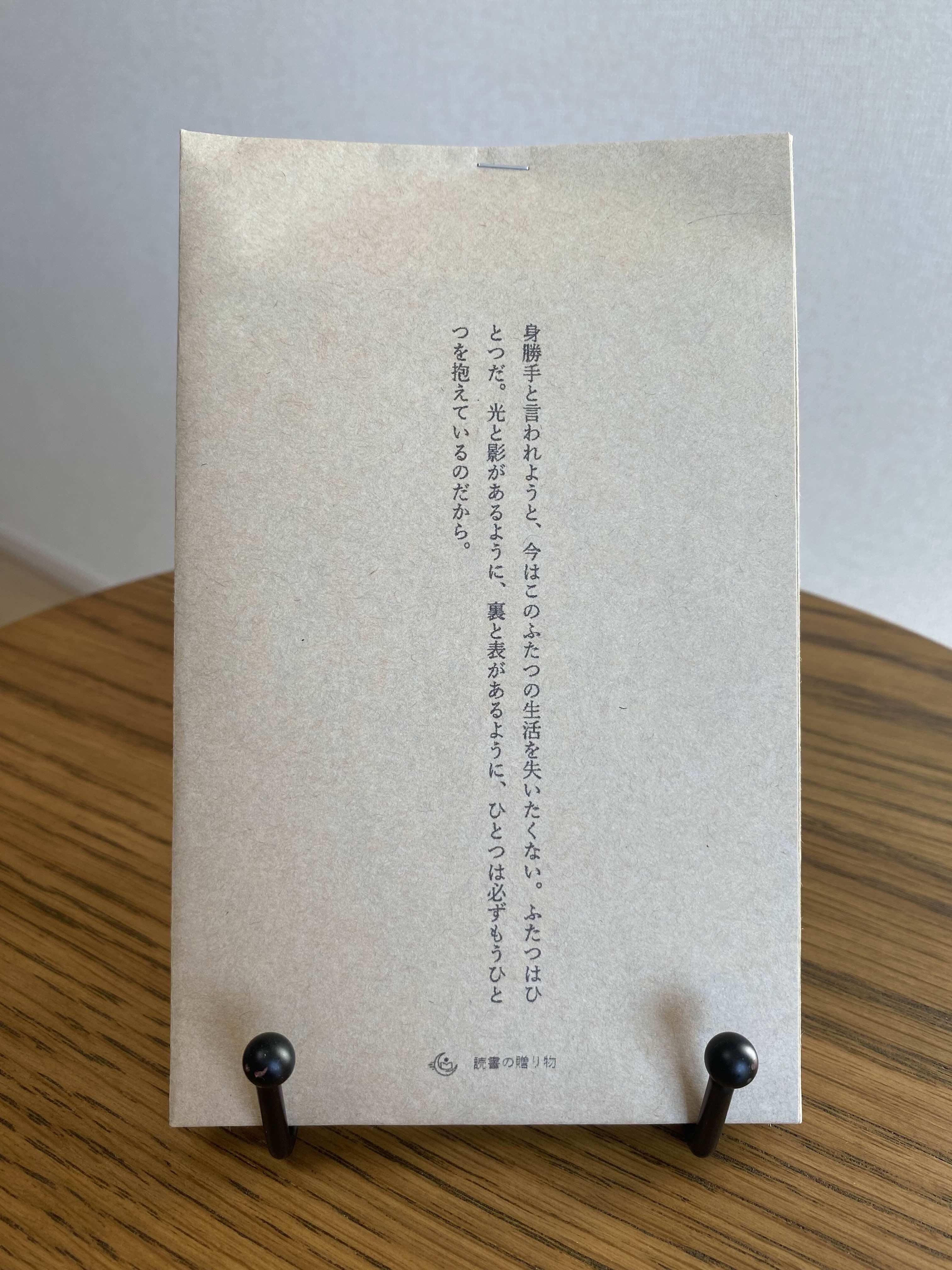 身勝手と言われようと、今はこのふたつの生活を失いたくない。ふたつはひとつだ。光と影があるように、裏と表があるように、ひとつは必ずもうひとつを抱えているのだから。