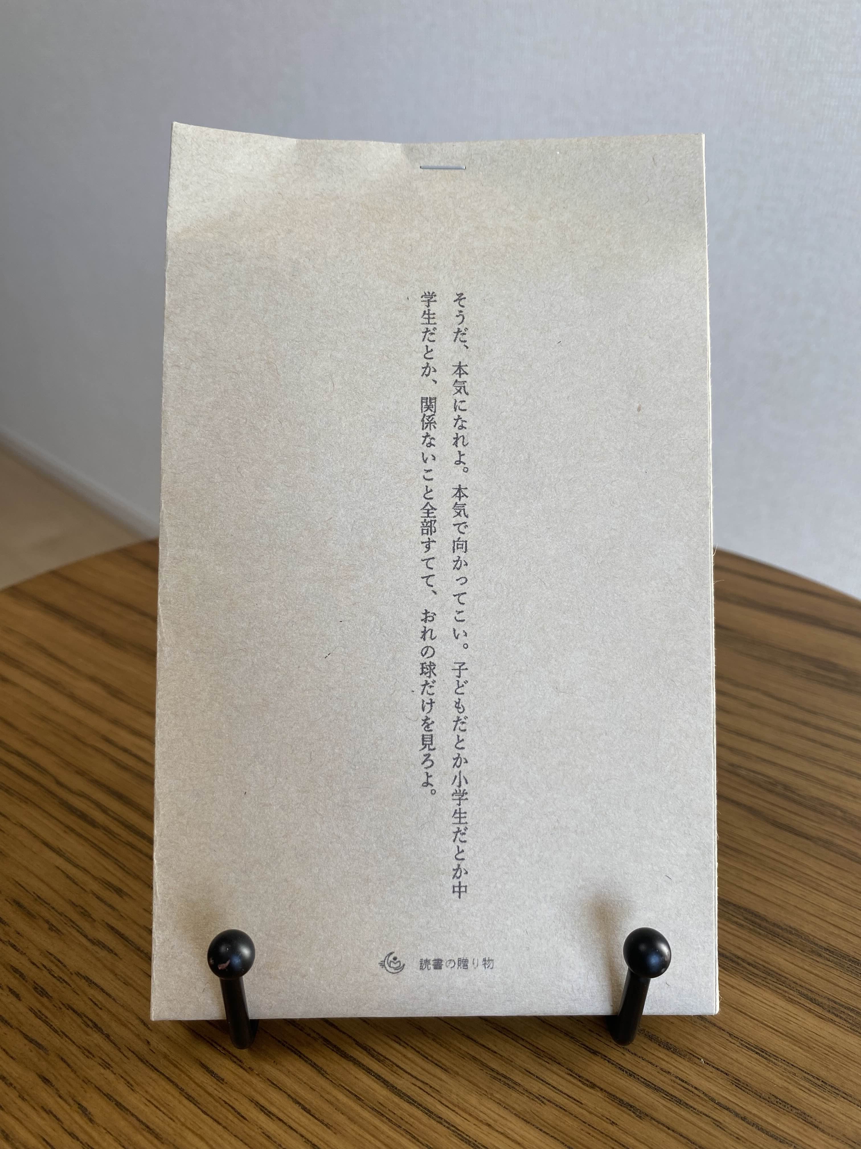 そうだ、本気になれよ。本気で向かってこい。子どもだとか小学生だとか中学生だとか、関係ないこと全部すてて、おれの球だけを見ろよ。